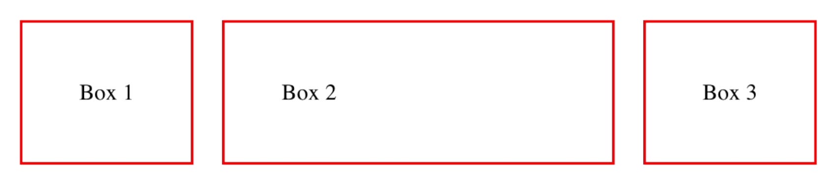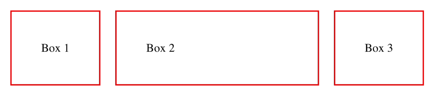 }Setting the flex-grow property of the second box to 1 makes it grow to fill up the additional space of the row.