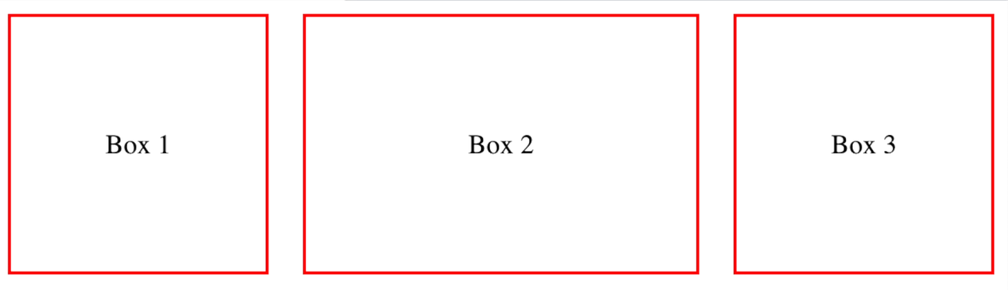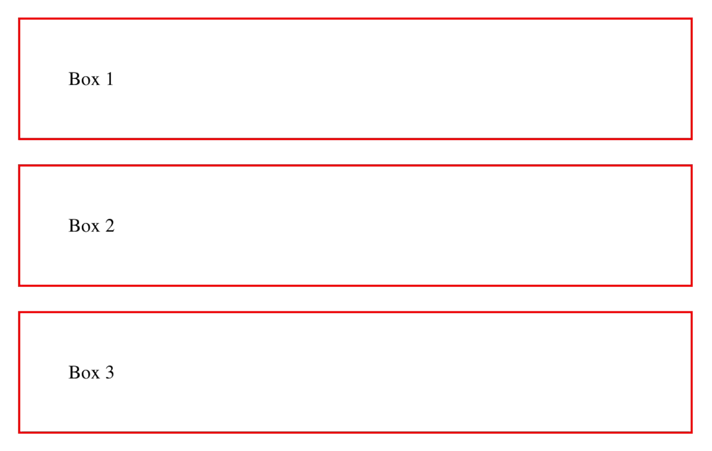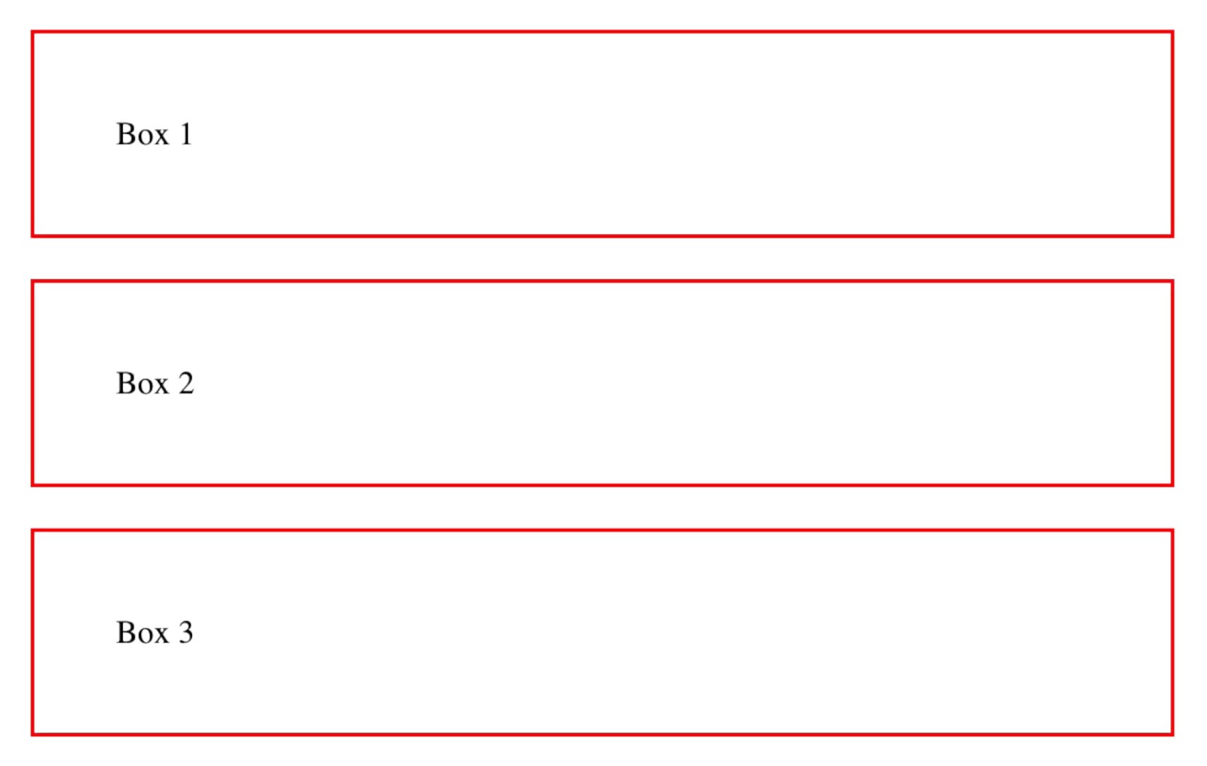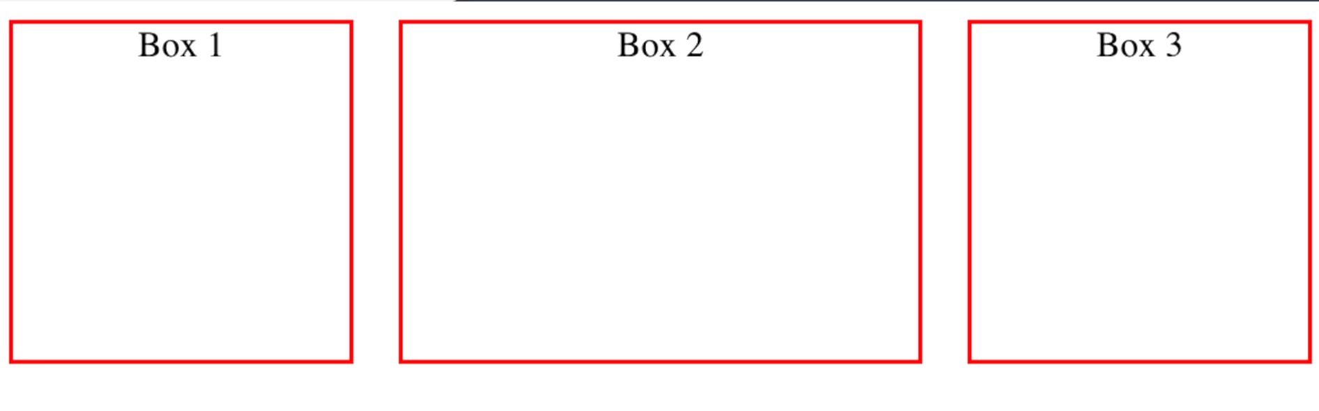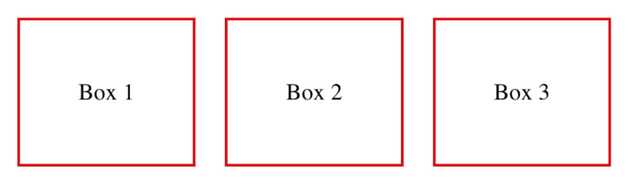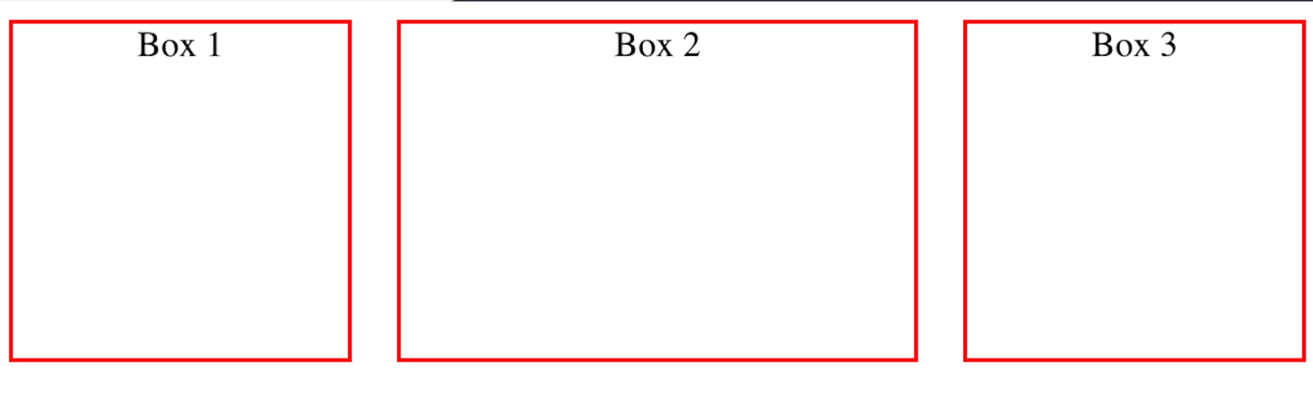 }When you look at the result, you'll notice the three boxes appearing in the same row, because the default flex direction is row. You can change the flex direction using the flex-direction property: