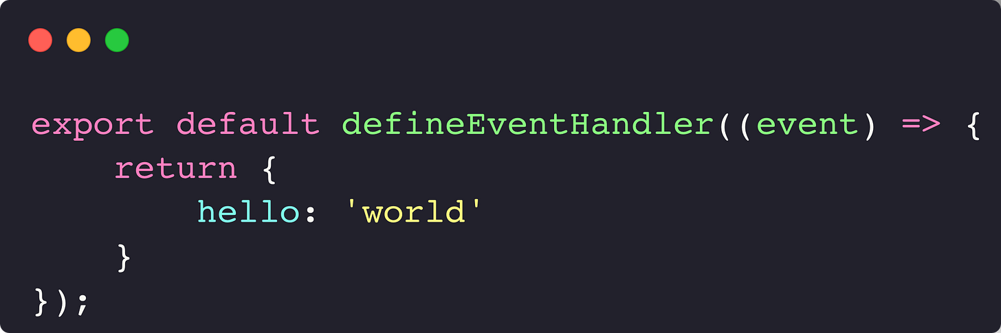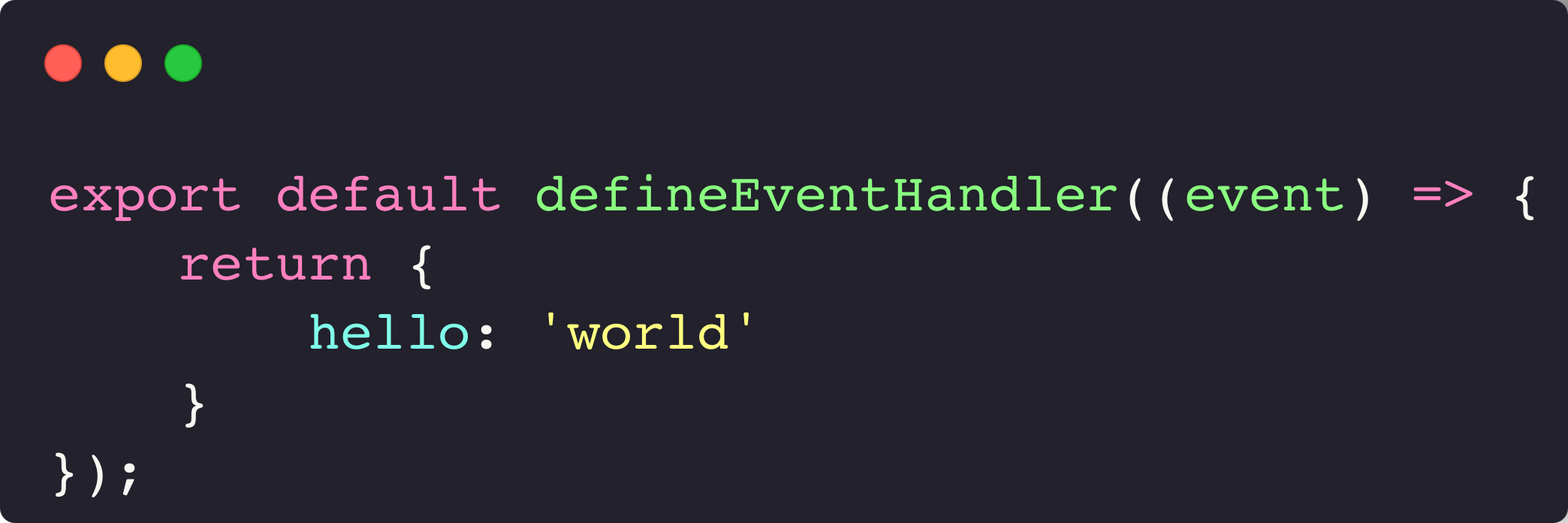 The following code is used to create an api endpoint with Nuxt. We just return an object. The return value is the response of the endpoint, which will be delivered to the frontend.
